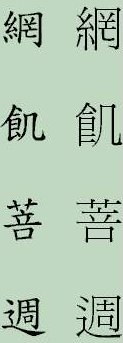 註2:組字字根在不同的字型下會有所差別。(下圖:不同字型下字體的差異,標楷體/新細明體)