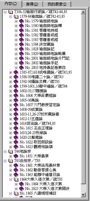 2000 年,CBETA 發表了三十二冊的經文成果,是按照大正藏原有的分部,從「阿含部」開始,按照經、律、論的次第排列,但是沒有考量到各佛典間的樹狀結構關係。例如:打開「阿含部」,雖然可以一下子就看到所有 151 部(從 0001 長阿含經到 0151 佛說阿含正行經)經名,但是無法知道它們之間的結構關係,也不知道有那些相關性的典籍(論書、注釋書等)。