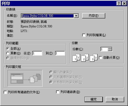 此時您可依照需要,選擇列印目前經文區所呈現的內容或是目錄區所選取的所有內容(經目或是搜尋結果)。同樣的,您也可以在經文區或目錄區中按滑鼠的右鍵,然後選取「列印」選項,一樣會出現這個畫面。